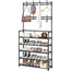 Con un diseño 3 en 1, incluye perchero, estante de zapatos y 8 ganchos para colgar prendas o accesorios de manera conveniente en su hogar. Con 8 ganchos móviles para bolsas, llaves, sombreros, bufandas, etc. Incluye dos barras para colgar ropa, 5 estantes metálicos con recubrimiento de tela para colocar zapatos, cajas, etc. El perchero y el estante de zapatos están construidos con robustos marcos de acero y tejido de alta calidad y suave al tacto. El diseño en forma de L aumenta la estabilidad y las gruesas tuberías de acero soportan grandes cargas. La tela del estante protege los objetos pequeños para evitar que se caigan. La fácil de seguir las instrucciones de montaje le permiten ensamblarlo rápidamente sin complicaciones. No olvide colocar las 4 cubiertas protectoras de las patas para mantener estable el perchero sobre cualquier superficie enmoquetada o desigual.